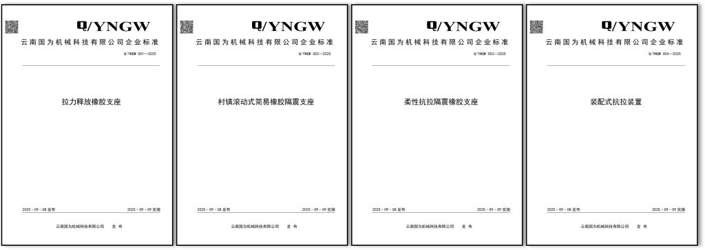 2025年9月8日,《拉力释放橡胶支座》(Q/YNGW 001-2025)、《村镇滚动式简易橡胶隔震支座》(Q/YNGW 002-2025)、《柔性抗拉隔震橡胶支座》(Q/YNGW 003-2025)、《装配式抗拉装置》(Q/YNGW 004-2025)四项企业标准正式发布,并于9月9日起全面实施。我院“高烈度区工程减隔震技术研究与应用”科研特色团队核心成员张龙飞、吴克川、余文正、兰香均为上述四项标准的主要起草人,全程主导技术论证与关键参数确定。四项标准聚焦高...